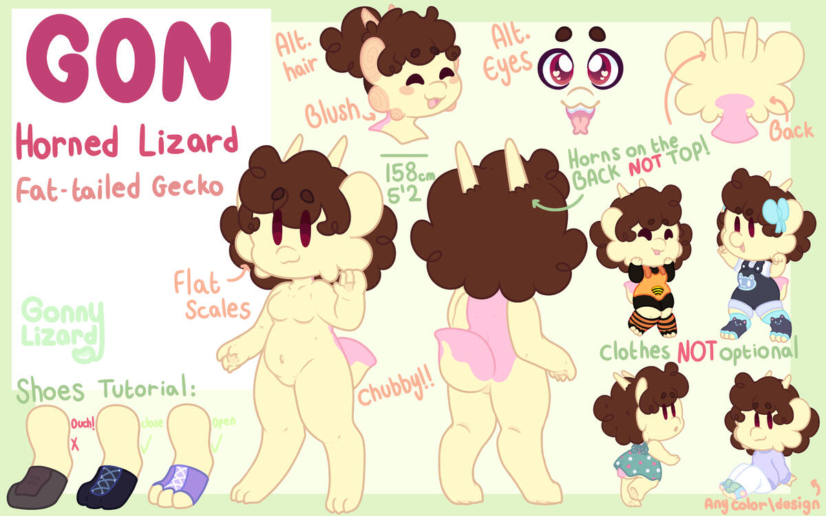 Reference sheets come with front + back/front clothing + details and info